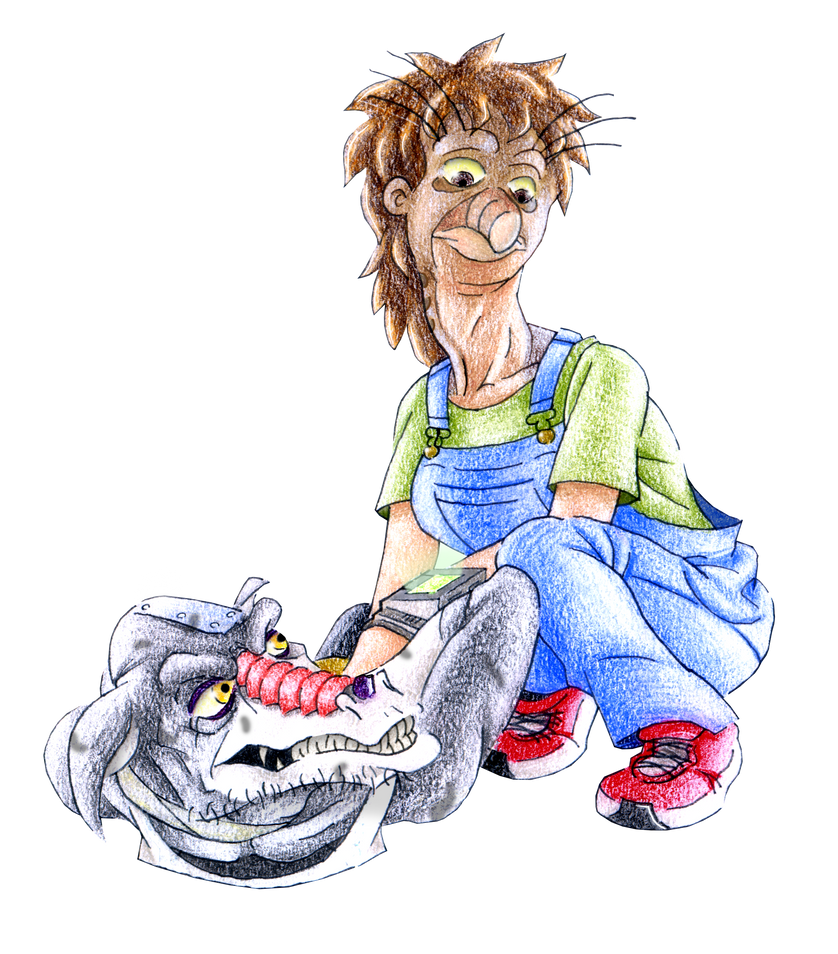 Dex found himself facing a gray-green face, with a small smiling snout and two round eyes with pronounced dark circles. Above it all, dense hair with spiky tufts. Her clothes were a kind of denim jumpsuit and sneakers—human fashion. Gender almost unrecognizable. Ugly by his standards. But to her, he probably looked just as bad. Much worse, in his current state. She has some guts, though.
